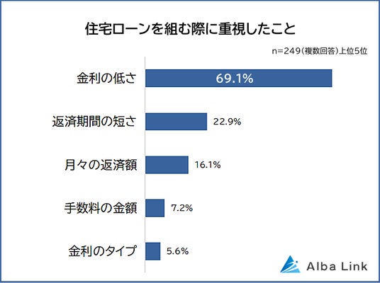 住宅ローンを組む際に重視したことは「金利の低さ」