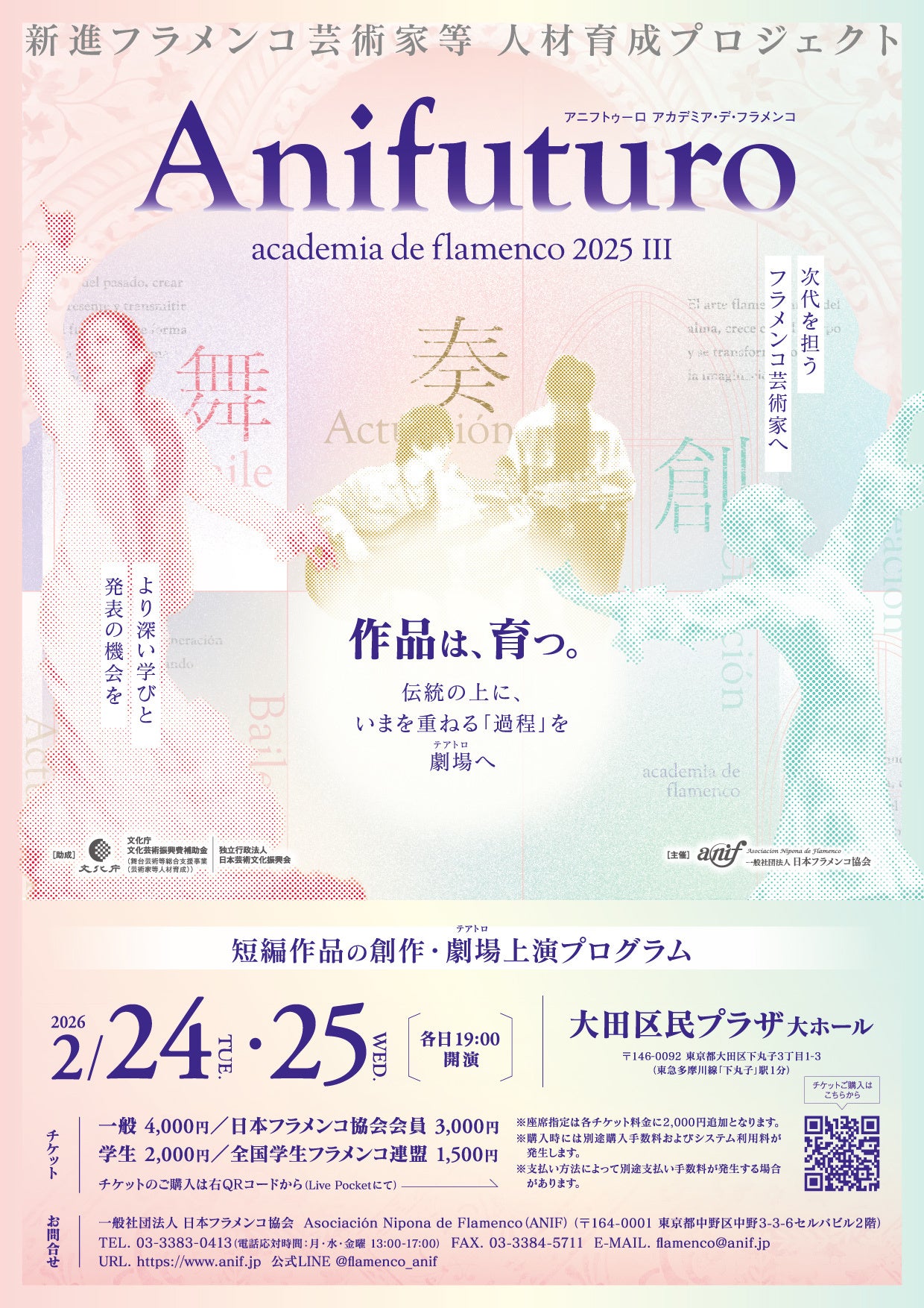公演名:Anifuturo - academia de flamenco 2025 III「短編作品の創作」成果発表公演日時:2026年2月24日(火)・25日(水) 各日19:00開演