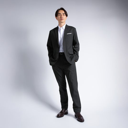 特徴:見た目を損なわない細かな通気孔があいた、高温多湿の夏に適した独自開発素材「ultimex COOL/アルティメックスクール」を使用。夏用スーツあるあるの透け感を限りなく無くし、シャツや下着が透けない設計。高ストレッチ性で、速乾と撥水に優れているので汗によるべたつきを解消し、突然の雨にもしっかり対応。胸ポケットは、出し入れ可能なフェイクチーフ付き。パンツはウエストゴムとドローコードでウエストの調整が可能。さらに右ポケット横のコンシールファスナーポケットで落としたくない小物類を収納可能。