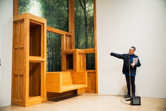 展覧会の開幕に先立ち、本展ゲスト・キュレーターのケン・タダシ・オオシマ氏が来場、本展の見どころについて語りました。
