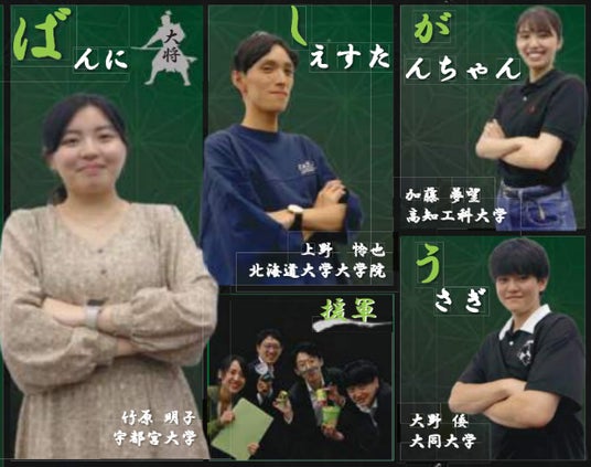 本間大雅(新潟大学大学院)※、高彩歌(三重大学)、小池惟嵯(日本大学)、岩澤一成(和歌山大学)、尾竹良太(芝浦工業大学)