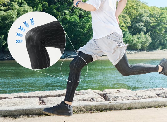 サポーター技術を応用した2層構造で脚を引き上げ、次の一歩を軽々と振り出せるアンダーウェア