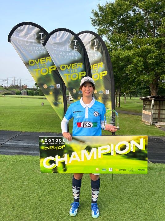 また、シニア+の部では元横浜フリューゲルスの前田治選手が優勝しました。  前田選手は、初日に4オーバー76で他2選手と並びトップ発進すると、最終日は5アンダー67と男子やシニアの部の選手に負けない好プレーで一気に抜け出し、通算1アンダー。こちらも後続に7打差をつける強さを発揮しました。これで前田選手は今季ツアー6勝目。Jリーグで培った勝負強さをフットゴルフでも見せています。 シニア+の部結果