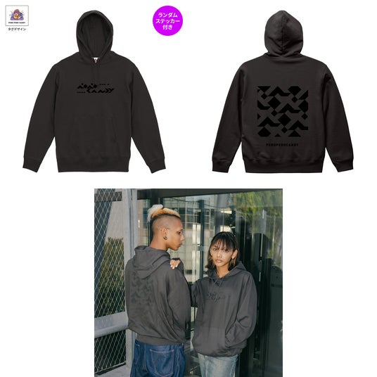クールな模様を胸元にあしらったパーカー。よく見てみると……?タグにはJanet真夢叶プロデュースキャラクター「幸ゴリちゃん」がいます。