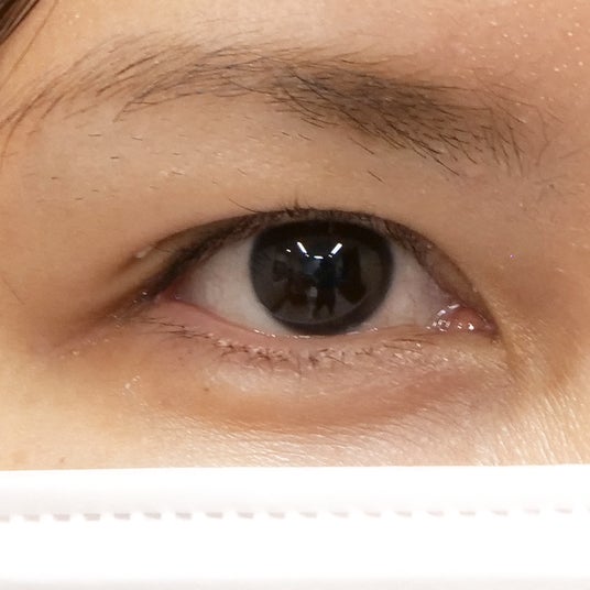 2滴点眼して10分後の使用例。白目の部分の充血が治まり、目が大きくクリアになっているのが分かる。
