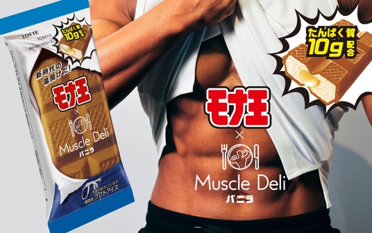 全国の筋トレ勢待望!タンパク質が10gとれるアイス「モナ王×マッスルデリ バニラ」、ロッテ公式オンラインショップで販売開始