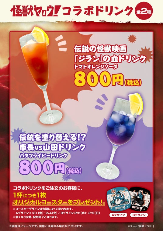 そして、原宿店ではオリジナルコラボドリンクもお楽しみいただけます。提供するドリンクは『「ジラン」の血ドリンク』(トマトオレンジソーダ)、『市長vs山田ドリンク』(バタフライピードリンク)の2種類です。八木監督とぐんぴぃさんさんは2種類のコラボドリンクについて「めちゃめちゃオシャレな飲み物!」「『「ジラン」の血ドリンク』は健康に良さそうですね」と、そのビジュアル、味ともに絶賛していました。