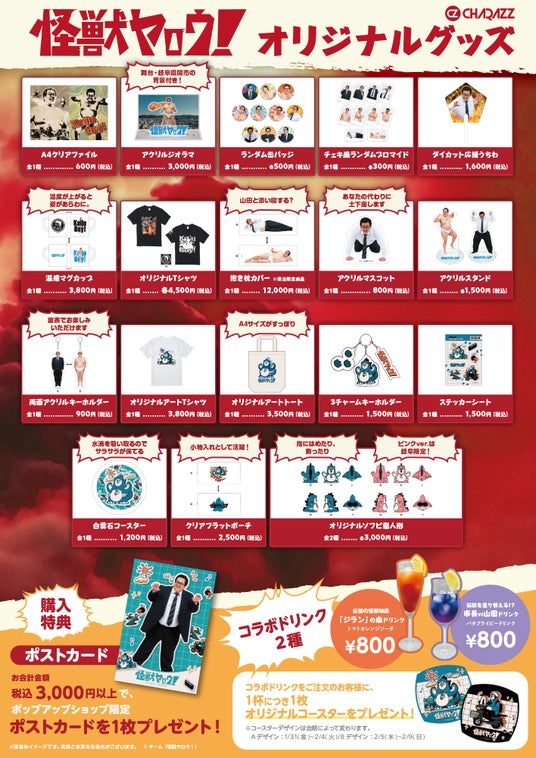映画『怪獣ヤロウ!』オリジナルグッズはCHARAZZにてオンラインでもご購入いただけます。こちらもあわせてご利用ください。