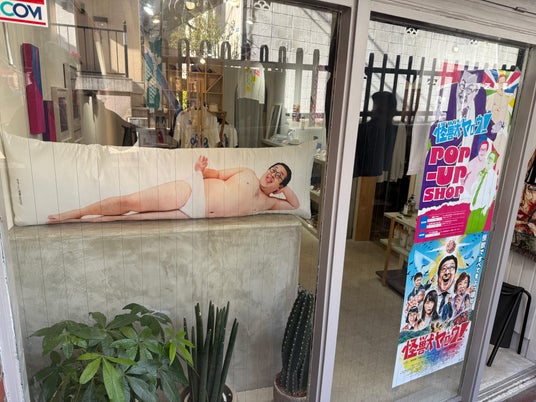 八木監督とぐんぴぃさんが東京での舞台挨拶の合間に訪れたのは、東京2会場のうちの原宿店(Apt335 New York, NY.)。店舗にはたくさんの作品関連グッズが展示されており、お2人とも店舗に入るなり全体を見回して思わず笑顔を見せていました。