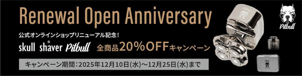 「お客様が感動する逸品」の輸入販売を手掛ける株式会社Bliss(本社:神奈川県横浜市、代表取締役:倉重純二)は、スキンヘッド専用電動シェーバー「Skull Shaver Pitbull」の公式オンラインショップをリニューアルいたします。これを記念し、2025年12月10日(水)~12月25日(水)の期間限定で、対象商品が20%OFFとなるリニューアル記念キャンペーンを実施。クリスマスシーズンに向けて、大切な人へのギフトや自分へのご褒美を、よりお得に購入いただける機会です。