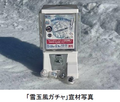 「スノーボウリング」もしくは「雪玉相撲」の体験動画をSNSに投稿された方限定で1回回せる「雪玉風ガチャ」を実施。真っ白な雪玉風カプセルの中には「スノーボウリング」や「雪玉相撲」にちなんだノベルティ等が入っています。