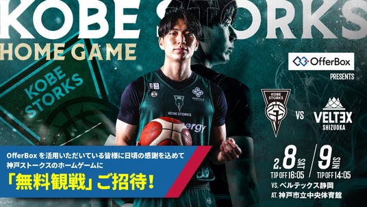 共同オーナーを務める神戸ストークスのOfferBox冠試合「OfferBox presents 神戸ストークス vs ベルテックス静岡」を開催します~OfferBoxを利用する学生150名を無料招待~