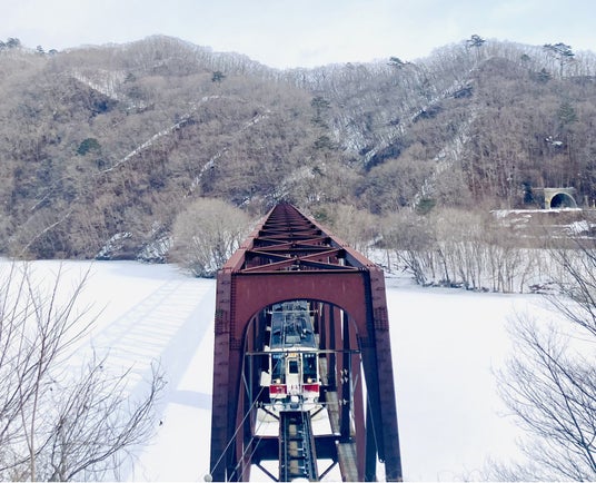 会津へと続く野岩鉄道沿線では、白銀に包まれた鉄道風景がご覧いただけます。車両は6050系がレトロでおすすめです。