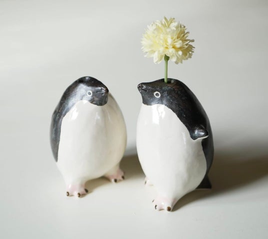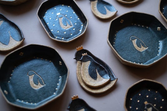 フェルト作家のSleepy Sheepさんが、ペンギンの子どもをモチーフにした作品を本展のためにつくってくださいました。作品は会場に展示、抽選で販売します。また、苔色工房さんによるペンギンモチーフの小皿や豆皿、「アデリーペンギン陶芸作家」として活躍される工藤ちえ奈さんの一輪挿しやマグカップ、お皿やぐい呑みなどの作品も並びます。