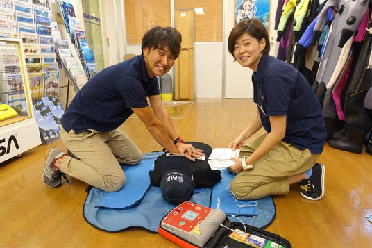 パパラギが主催する「エマージェンシー・ファースト・レスポンス(EFR)」コースでは、最新の救命救急法を特別価格で学べます。心肺蘇生(CPR)、AEDの使用方法、応急処置の基本スキルを、ダイバーはもちろん、ダイバーでない方も手軽に習得可能です。通常、講習料が3万円近くするお店も多い中、パパラギでは「ダイバーだけでなく、幅広い方々に応急手当を普及させたい」という想いのもと、リーズナブルな価格でご提供しています。