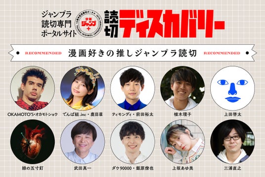 創刊10周年記念「少年ジャンプ+」歴代読切ポータルサイト「読切ディスカバリー」をオープン! 川島明、東海オンエア・てつやら漫画好き著名人が、2000作以上の読切作品から“推し読切”を語るインタビューも