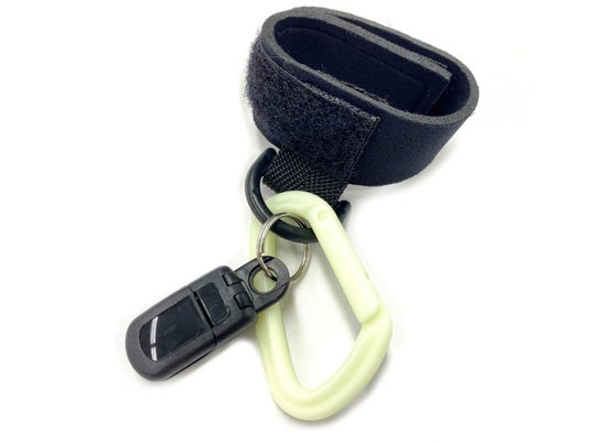 暗闇で蓄えた光を発光させるカラビナ付き多機能バンド「グローバンド」