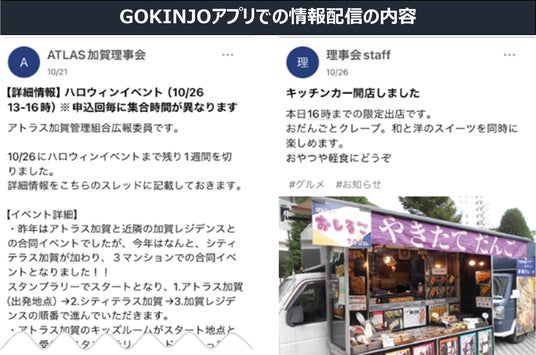 また、GOKINJOアプリを導入しているマンション※1においては、イベント開催案内などの情報配信にアプリを活用し、住民への効果的な周知と集客を実現しました。