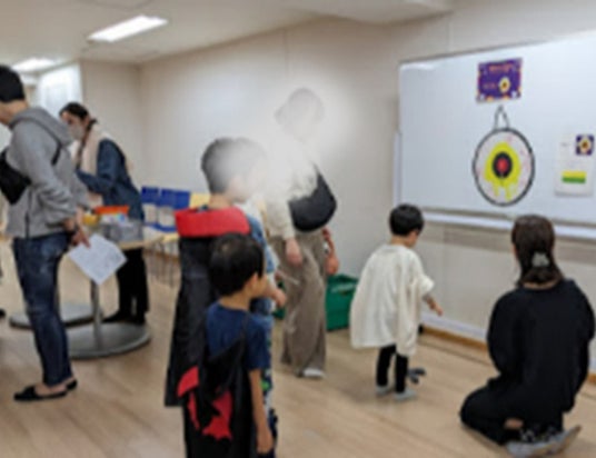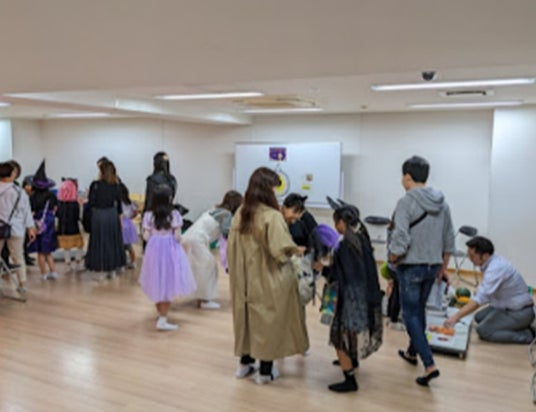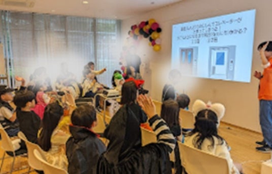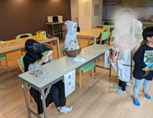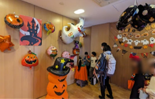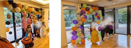 アトラス加賀では、記念撮影ができるフォトスペースを設置しました。理事会メンバーとボランティアスタッフによって大きなバルーンアーチなどハロウィン仕様の楽しい装飾が行われ、仮装をした子どもたちでとても賑やかな空間となりました。