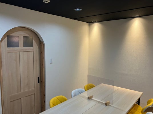お仕事の打ち合わせやミーティング、ワークショップ、面接や勉強会の場所として、またプライベートの集まりにも使える完全個室のスペースとなっております。