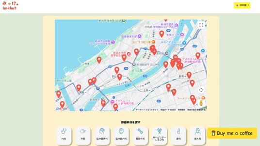 医療機関検索アプリ『みっけ』『みっけ』は、在留外国人や非日本語ネイティブの方々が、受診可能な医療機関をスムーズに探せるアプリです。新潟県および静岡県浜松エリアを中心に216施設を登録しており、約44,000人の非日本語ネイティブの方々が利用可能な環境づくりに貢献しています。日本語・英語・中国語・ポルトガル語の4言語に対応しています。
