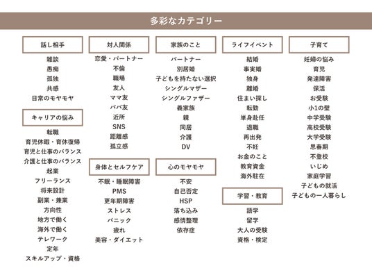 「キャリア不安」や「育休復帰」「地方・海外で働く」「介護」など、働く中で直面する悩みは多岐にわたります。しかし、職場や家庭、身近な人間関係では本音を話しづらいという課題を抱える方は少なくありません。一方で、インターネットやSNS上の情報は、信頼性が不十分であったり、心ない言葉に傷ついてしまうケースもあります。