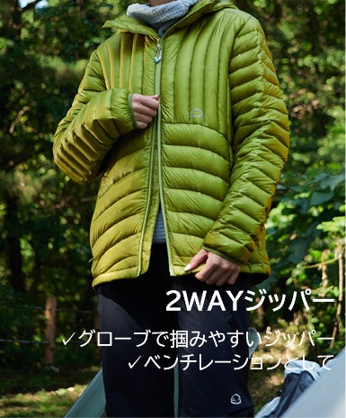 耐久撥水加工がされた超軽量な7D表生地に、最上級のハンガリアングースダウン800-850FPを110g充填しました。ZEROGRAMのシュラフ開発で培ったキルティングラインは体温を末端まで高速に伝達しコールドスポットができづらく、バックパッカーの身体を冷気からしっかり保護します。