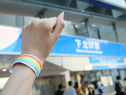 参加者は、受付でもらえるリストバンドを着けて街へ。