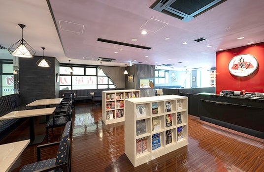 和カフェ&レストラン「有樂」とは、名古屋刀剣博物館の2階に併設された飲食店です。店名は、名古屋刀剣博物館が所蔵する国宝の刀剣「有楽来国光」(うらくらいくにみつ)、その所有者「織田有楽斎」(おだうらくさい)に由来しています。日本刀をイメージした装飾を随所にあしらい、和モダンで落ち着きのある雰囲気となっております。店内には自由に読んでいただける刀剣関連の書籍や日本史・戦国史関連の書籍がズラリと並び、読書を楽しみながらゆったりとお過ごしいただけます。ご利用は、名古屋刀剣博物館にご入館いただいた際はもちろん、和カフェ&レストラン「有樂」のみにご来店いただくことも可能となっておりますのでぜひお越しください。