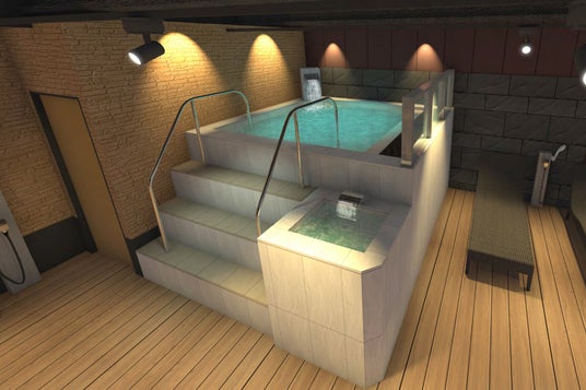 サウナから最適な動線の水風呂サウナのすぐ横には水風呂を新設。