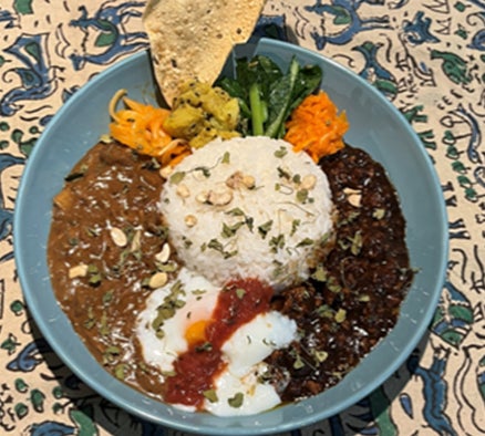 今年のトレンド「ネオ・カシミールカレー」をプロジーヌ ローストスパイスビーフカレーとフルーツを使ったオムカレーをご紹介します。深みのあるスパイシーな黒カレーに、フルーツの甘酸っぱさと卵のまろやかさが加わり、驚くほどバランスの取れた味わいが楽しめます。辛さの中にフルーティーな甘みが広がる、新感覚のオムカレーをぜひお試しください! 2)インドとアジアの2種盛りブラックなスパイスカレー アグレッシブな喫茶店やカレー店に最適、ネオ・カシミール黒カレーが彩る、最新スパイスカレー!