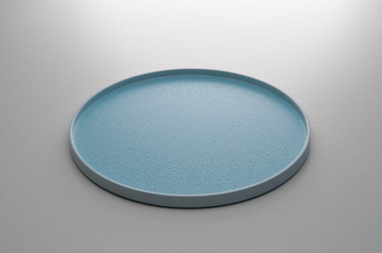 廃棄予定の木地に塗装を施した「トトンの丸盆」