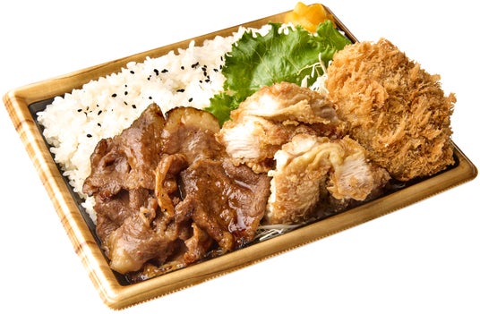 ヤマ牛弁当肉のヤマ牛の大人気牛カルビ、唐揚げ、コロッケが1つのお弁当に集合。みんなが大好きなおかずが集まった最高なコンビネーションのお弁当です。