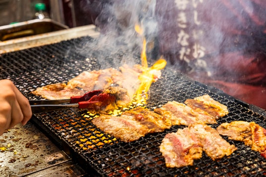 【こだわり3. 炭火仕上げ】肉の焼き方は、私たちのこだわり。遠赤外線でじっくり焼き上げます。焼肉はムラなく、炭の香りを纏わせています。炭火仕上げの肉の香ばしさをご堪能ください。