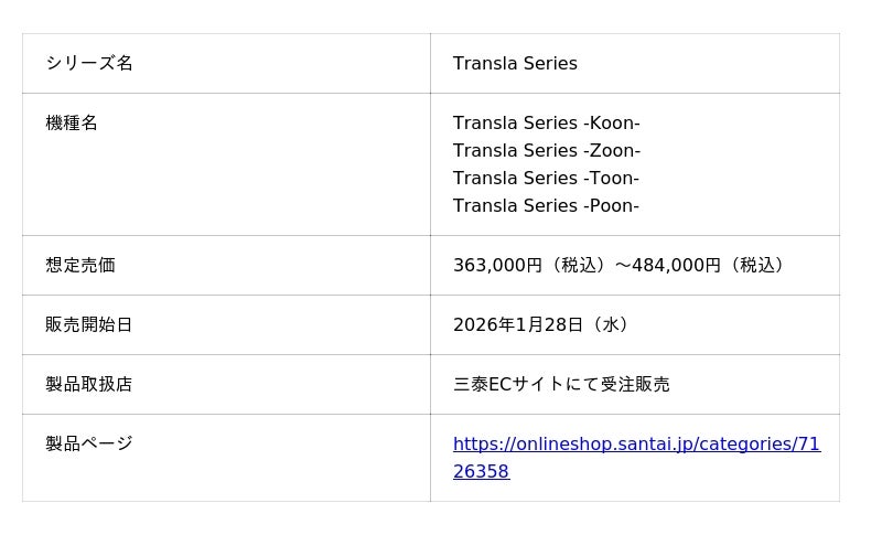 《Transla Series》製品ラインアップ