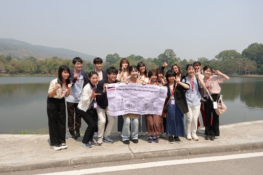 学生委員会の学生を対象に、千葉大学の協定校であるタイのチェンマイ大学に赴く、2週間の留学プログラム「環境ISO学生委員会×「Global+」留学プログラム ~タイ北部のチェンマイ大学でSDGsと持続可能性について学ぶ~」が、2022年度にスタートしました。SDGsやタイの環境問題に関する講義への参加、SDGsに関連する施設の見学、現地の学生や教職員との交流を行うほか、国立公園へのフィールドワークやタイの文化体験などを行っています。