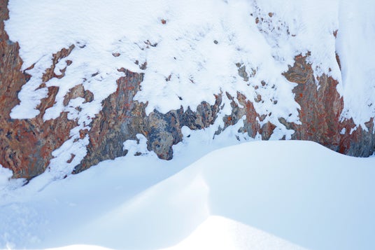 ■極地の真冬の岩壁真冬の岩山。白銀の世界の中で、
