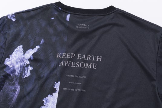 マウンテンハードウェアは、これまでもアースデイにおいて「Keep Earth Awesome-素晴らしい地球をそのままに-」をテーマに、環境啓蒙活動を行ってまいりました。 今回のアースデイでは、写真家の竹沢うるま氏が見てきた北極での【白夜の光】をテーマに、うるま氏が触れた自然の光を大胆にデザインに落とし込んだコラボレーションTシャツを販売いたします。