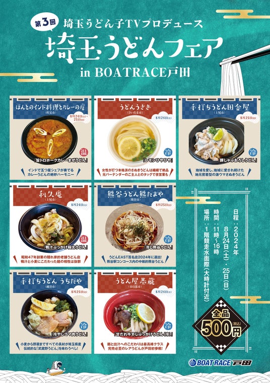 目指せ! うどん日本一! 8月24日(土)8月25日の2日間、BOAT RACE戸田に埼玉県内の厳選うどん店が集結