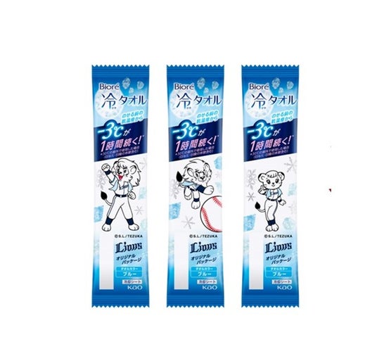 花王株式会社のスキンケアブランド「ビオレ」は、プロ野球球団「埼玉西武ライオンズ」とのオリジナルコラボ商品として、球団マスコットである「レオ」と「ライナ」をあしらった『ビオレ 冷タオル ライオンズデザイン』を、2025年7月8日からベルーナドームで数量限定発売いたします。また同日より9月上旬まで、ホーム戦来場者全員に本商品1枚をサンプリング*1。「埼玉西武ライオンズ」の試合を多くの方に快適に観戦していただけるよう、暑熱対策の啓発活動を強化してまいります。 *1 配布予定の無い試合もございます ■取り組みの背景 2025年の日本の夏も、昨年に引き続き過酷な暑さが見込まれており、暑熱対策の重要性は高まっていると考えられます。特に野球等のスポーツシーンにおいて、暑熱対策は選手やファンにとってもますます課題となっています。そのような課題を受け、来場者や選手・球場スタッフの方々に酷暑環境下でも快適に過ごしてほしいという想いから、「ビオレ」と「埼玉西武ライオンズ」はスタジアムの暑熱対策啓発を強化してまいります。 「ビオレ」は、肌にのせる前の肌温度から-3℃が1時間続く*2 冷却シート『ビオレ 冷タオル』から「埼玉西武ライオンズデザイン」をベルーナドームで数量限定発売。同時に、ホーム戦への来場者全員に1枚ずつ提供します*1。3種類のパッケージデザインを楽しんでいただきながら、埼玉西武ライオンズのチームカラーであるブルーの「冷タオル」で夏の野球観戦も笑顔で楽しく過ごしていただけるよう、ファンの皆さまに喜びと快適を提供してまいります。 *1 配布予定の無い試合もございます *2 30℃の屋外で使用した場合(日なた・日陰の休憩含む) ビオレは、肌を「人と人」「人と社会」がつながるための大切なコミュニケーションツールであり、暮らしを支えるヒューマン・インターフェイスであると捉え、肌を通して社会とのつながりを広げるために、さまざまな活動やモノづくりに取り組んでいます。今後も、多くの方々が夏をより快適に過ごせるようにサポートしてまいります。 ■商品概要 ビオレ 冷タオル ライオンズデザイン のせる前の肌温度から-3℃が1時間続く*2 冷却シート *2 30℃の屋外で使用した場合(日なた・日陰の休憩含む) - 首にかけて使える50cmの大判シート(50cm×20cm) - 厚手のシートに含まれるたっぷりの冷却ウォーターが熱を吸い込み蒸発。 気化熱の作用で肌の熱(ほてり)を逃がし続ける - タオルカラー ブルー - 個装タイプ(1枚入) - 無香性 - ヒアルロン酸配合 - メントール配合でひんやり感長続き 発売日:2025年7月8日(火) 販売場所:球場内立ち売り販売・ライオンズチームストアフラッグス ※埼玉西武ライオンズ企画品については、数量限定品につき、品切れの際はご容赦ください ※メーカー希望小売価格は設定いたしません ※デザインはお選びいただけませんので、あらかじめご了承ください ■ベルーナドームにおける具体的なサンプリング実施日程*3 *3 予定は変更になる場合がございます