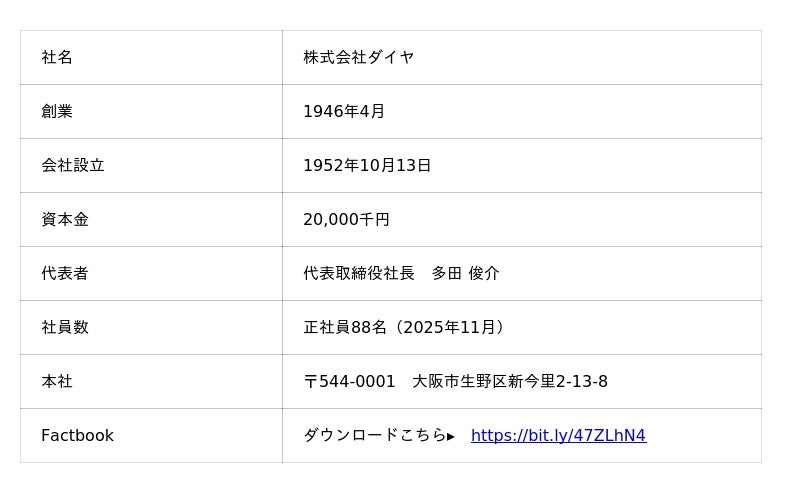 LINEスタンプも大好評発売中とのこと。大阪のパワフルな“おかん文化”を、美味しいパンと一緒に全国へ広めていきましょう!■株式会社ダイヤ 会社概要