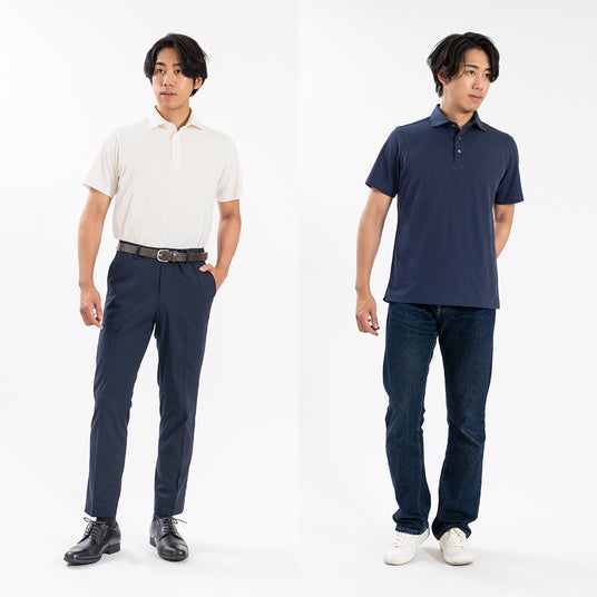 ※1. 抗菌効果とは、菌の増殖を抑える効果のことです。使用状況により効果は変わります。 <ワイドカラー仕様のポロシャツでクールビズにも> 本製品は、ドレスシャツのようなワイドカラー仕立てで、ポロシャツというカジュアルさの中に上品さとフォーマルさを兼ね備えたデザインです。クールビズスタイルにも適しており、オフィスや商談などビジネスシーンにもしっかりと適応。毎日の通勤服としても、プライベートで着用する一着としても清潔感と快適性を両立した一枚です。