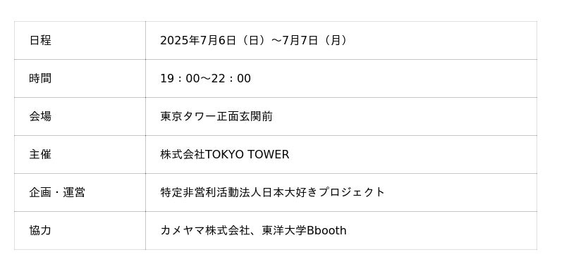 ■「東京タワー七夕まつり2025」の詳細はこちら