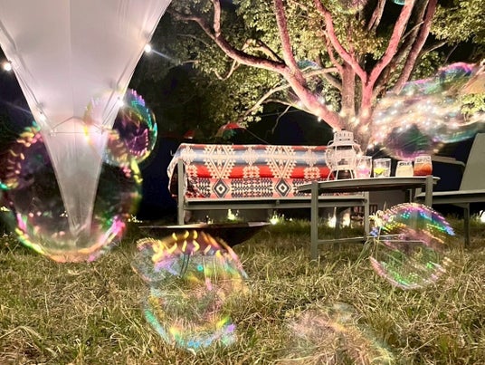 「Glamping Fantasia」では、お客様を物語の世界へと誘う5つのユニークなコンテンツをご用意しています。 1.星降る焚火ラウンジ【毎日開催】 キャンプファイヤーを囲みながら、上質な音楽と共に、カクテルやドリンクを片手に過ごす夜時間を提供します 。 宿泊者様限定の無料ドリンクコーナ―を用意、満点の星空の下で、とっておきのチルアウト体験をお楽しみください。 ・宿泊者様ご利用無料 ・提供時間 17時~20時まで 2.バブルランタンタイム 【開催期間:7月19日(土)~9月15日(月)の土日祝、お盆期間(8月9日~8月17日)】 7時から~20時までの間、毎時ごとにシャボン玉が舞い上がり、ランタンの灯りと重なり合うことで、まるで夢の中のような幻想的な風景が広がります。 3.星灯(ほしあかり)キャンドルすくい 【開催期間:7月19日(土)~9月15日(月)の土日祝、お盆期間(8月9日~8月17日)】 星や雲をモチーフにしたフローティングキャンドルをすくい、BBQエリアで灯すことができます。お持ち帰りも可能で、“空のかけら”を手に入れる優しい光の体験です。 4.光る夜の冒険 【毎日開催】 光るキーワードを探して巡る、ナイト・トレジャーイベントです 。スタンプをすべて集めた方には、翌朝ささやかな景品をプレゼント。ファミリーやカップルでも楽しめる体験型プログラムです 。 5.大人のアルコールかき氷(有料)【毎日開催】 ひんやり、ほろ酔い気分を楽しめる、ブルーキュラソーやカシスリキュールなどを使ったちょっと贅沢な“大人のかき氷”を提供します。通常のノンアルコールもご用意しておりますので、お子様も安心して楽しめます。 星降る焚火ラウンジ バブルランタンタイム 星灯(ほしあかり)キャンドルすくい 大人のアルコールかき氷 ※画像はイメージです。