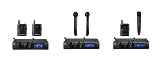 (左から)2chボディパックシステム『ATW-1421』、2chハンドヘルドシステム『ATW-1422』、2chコンボシステム『ATW-1423』