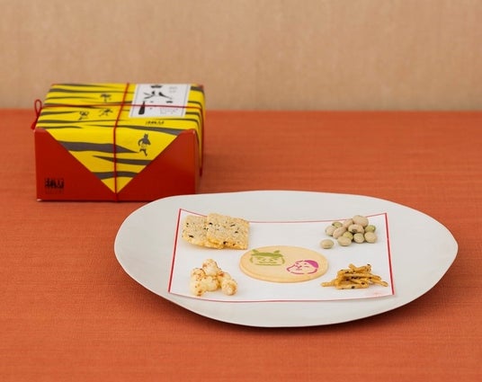 香ばしく煎り上げたお豆や鬼とお多福を描いた玉子煎餅など豆まき後にゆっくり召し上がっていただきたい一品です。