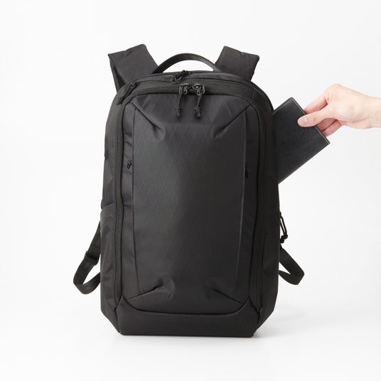 メイン気室には、前面側に上下2つのメッシュポケット、背面側にタブレットなどを収納できるオープンポケット、両側面にドリンクなどを収納できるオープンポケットを配置。持ち物をサイズや使用頻度に合わせて最適な場所に収納できます。