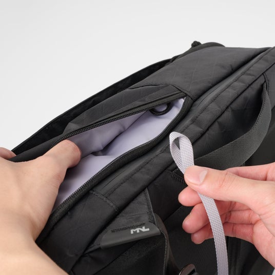 2つのフロントポケットおよびサイドポケットの内部にループがあり、キーリールやパスケースなどを好みの位置に取り付けられます。