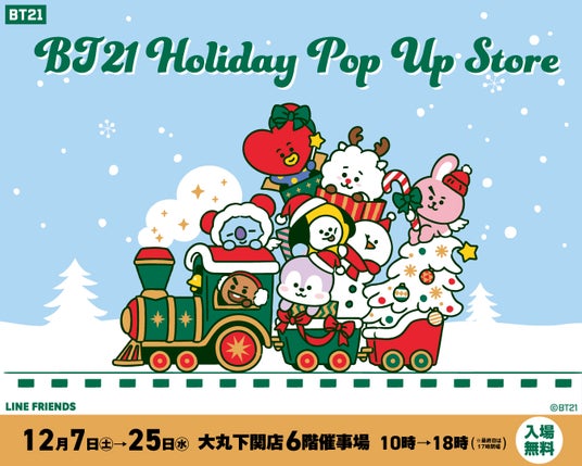 LINE FRIENDSのグローバル人気キャラクターブランド「BT21」のPOP UP STOREが期間限定で登場!ホリデーシーズンをイメージした新商品がPOPUPに登場!人気商品を多数取り揃えております。