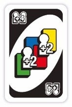 好きな色を宣言し、次の人とそのチームの仲間はカードを2枚引きます。次の人はそのターンにカードを捨てることはできず、次の人に順番が移ります。